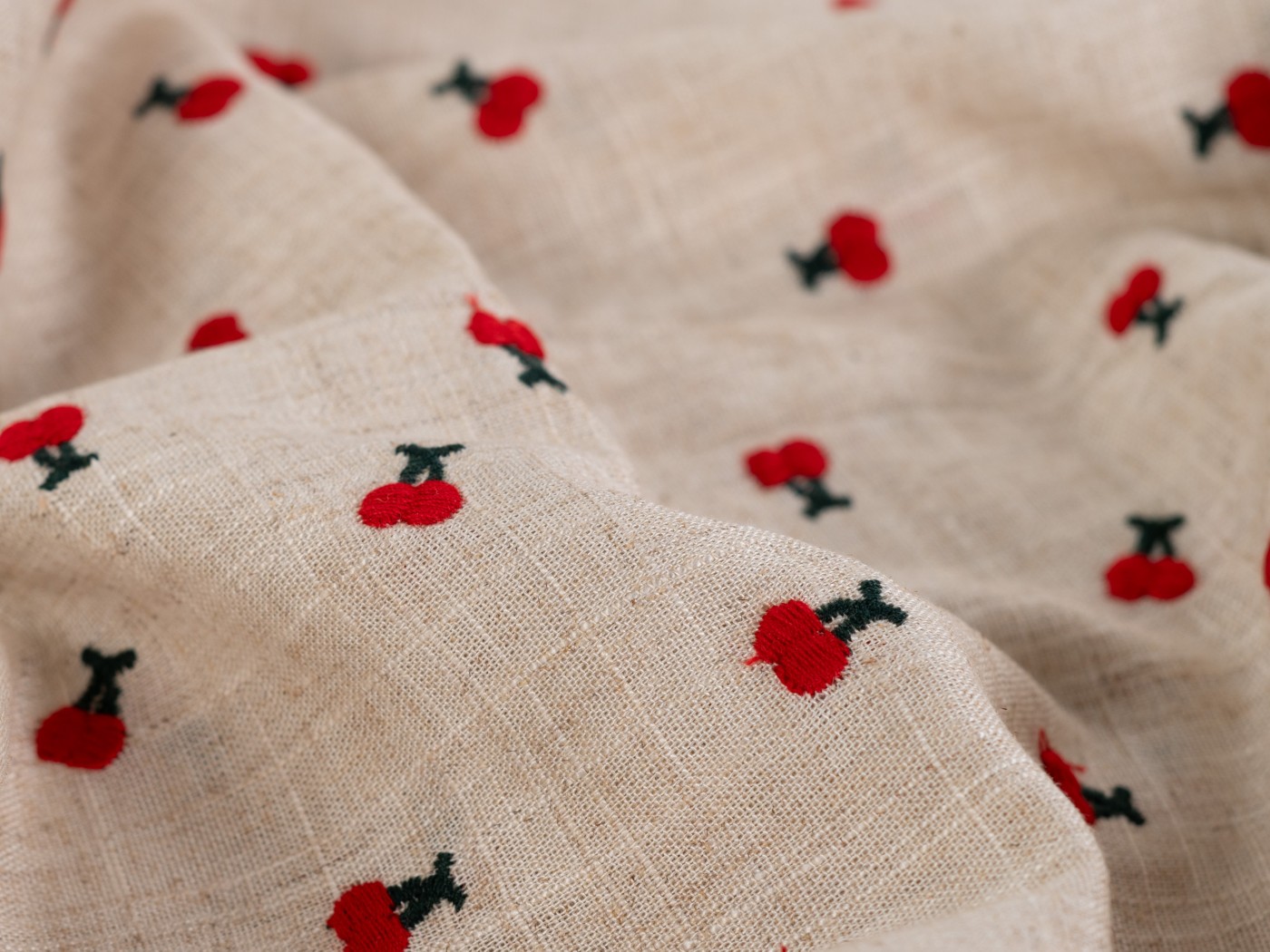 Product information "Viskose Leinen Stickerei Kirschen"