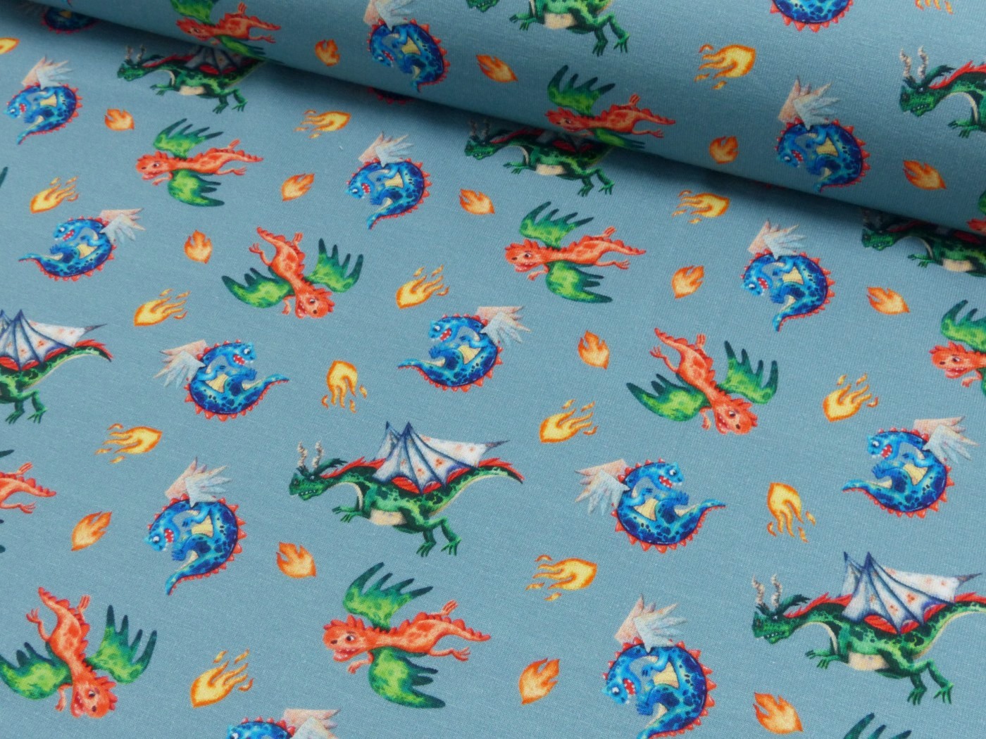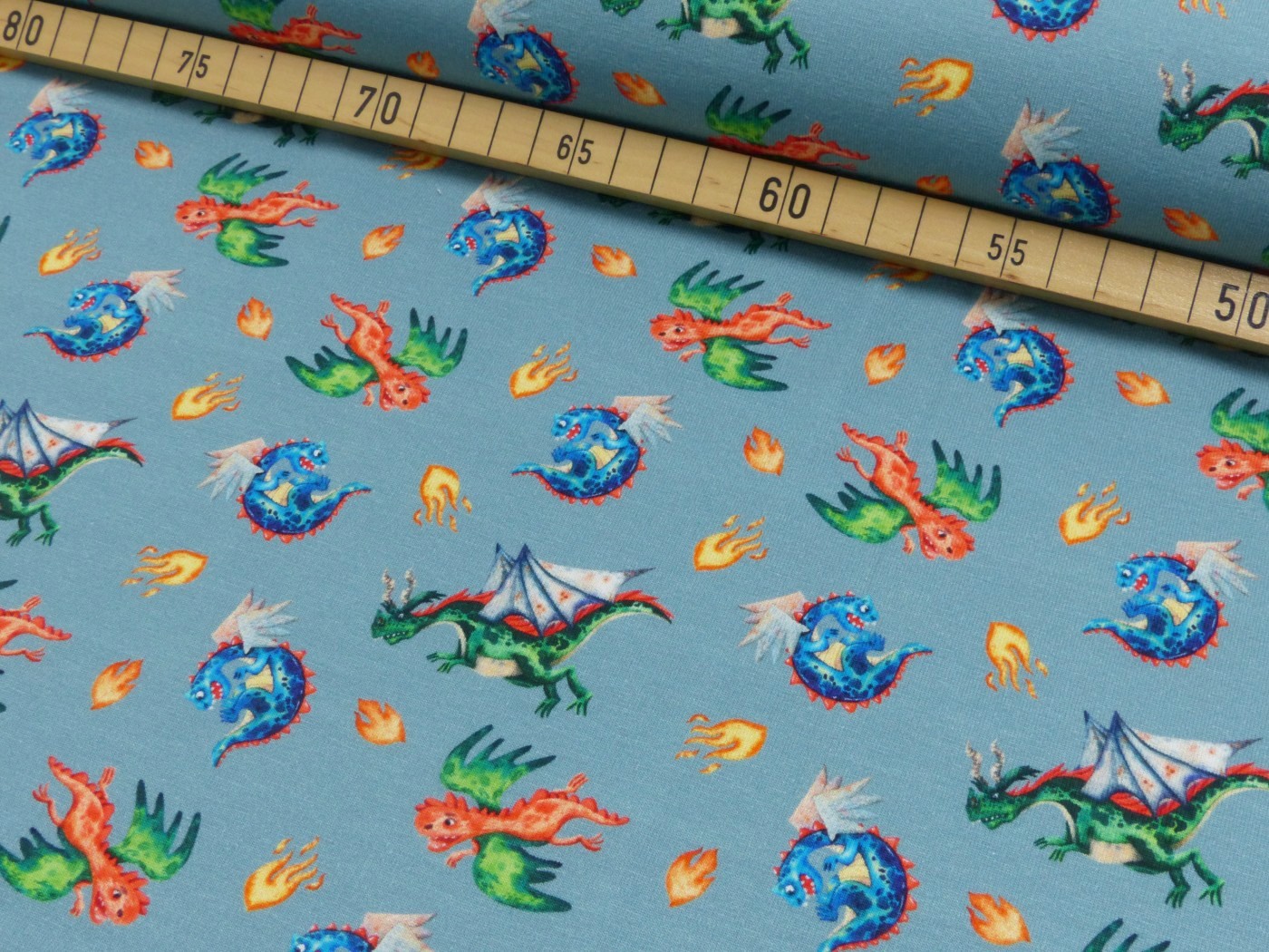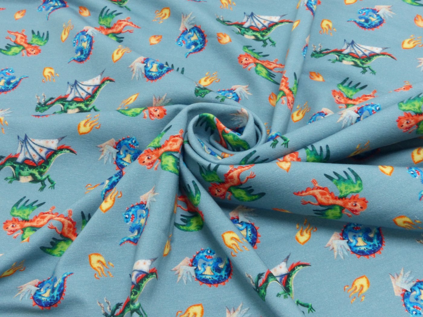 Product information "Baumwoll Jersey Digital Druck Wikinger Drachen"